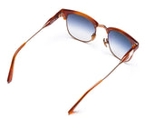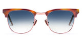 Mother of pearl: Vanguard 26 features a polished rose gold wire frame with polished amber acetate temples and hypoallergenic bronze ceramic nose pads. Lenses are navy gradient, while mother of pearl side inlays complete the look.