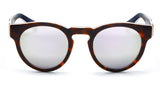 Layer it on: Voyager 10 features our super-popular layered tortoise acetate in a matte finish. The glasses are a classic tortoise color, with an ivory middle layer thats adds a graphic pop to the rim of the glasses. Silver mirrored lenses and pink coral side inlay complete the look.
